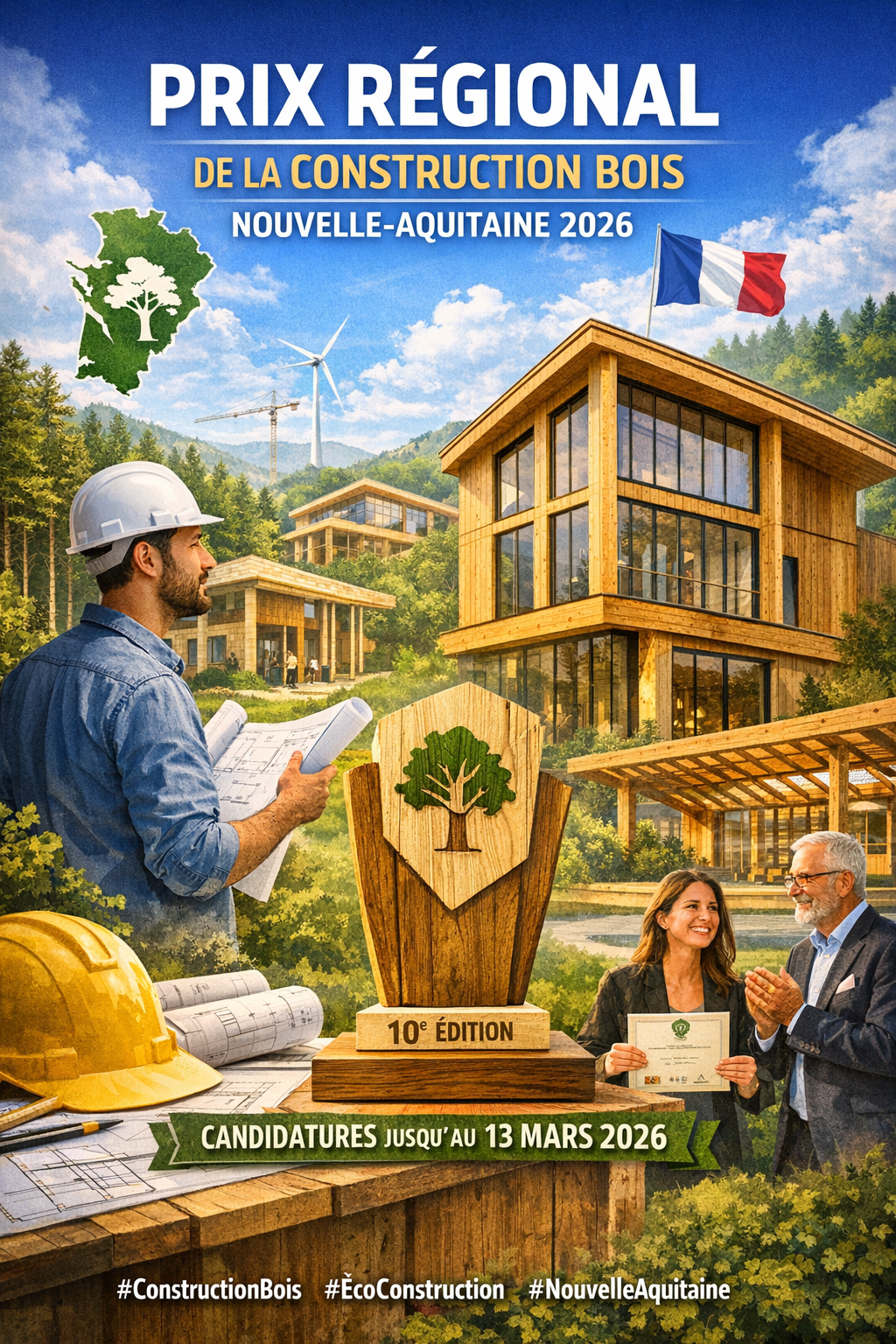 Cette 10ᵉ édition du Prix Régional est une opportunité unique de montrer l’excellence de la construction bois en Nouvelle-Aquitaine. Que vous soyez architecte, maître d’ouvrage ou entreprise spécialisée, c’est le moment de mettre en avant vos projets, vos innovations et votre savoir-faire.