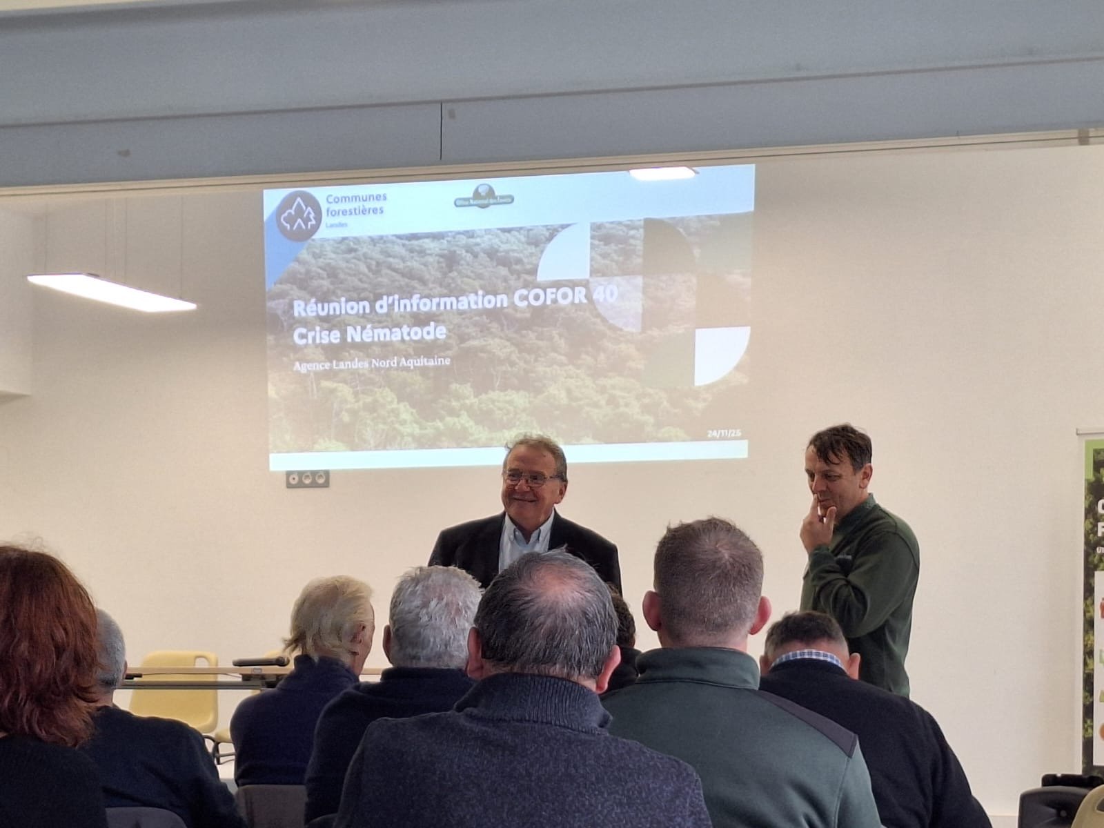 Aujourd’hui à Seignosse, élus locaux et professionnels de la filière forestière se sont réunis pour échanger autour d’un enjeu crucial pour l’avenir de nos territoires : la crise sanitaire provoquée par le nématode du pin maritime.
