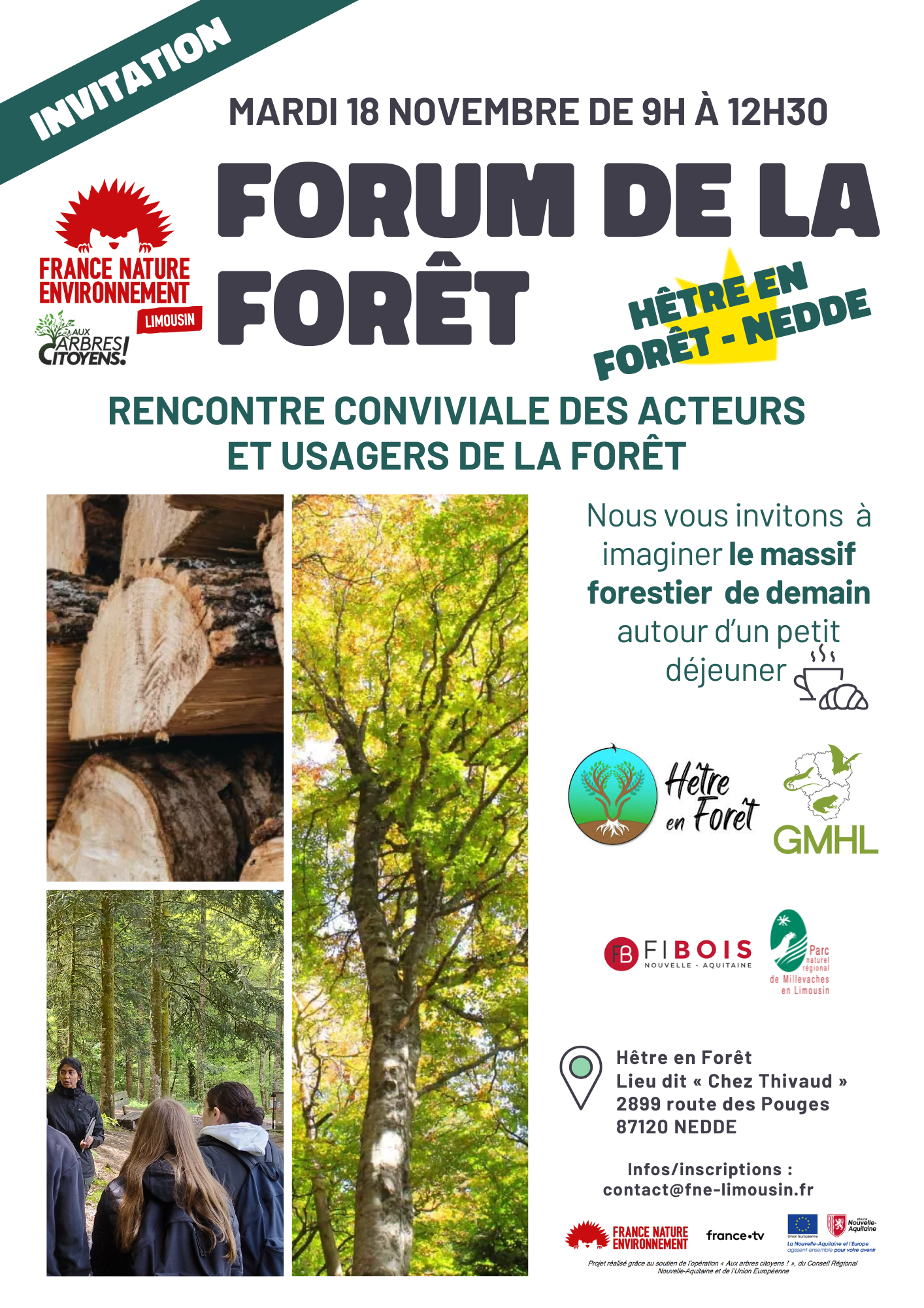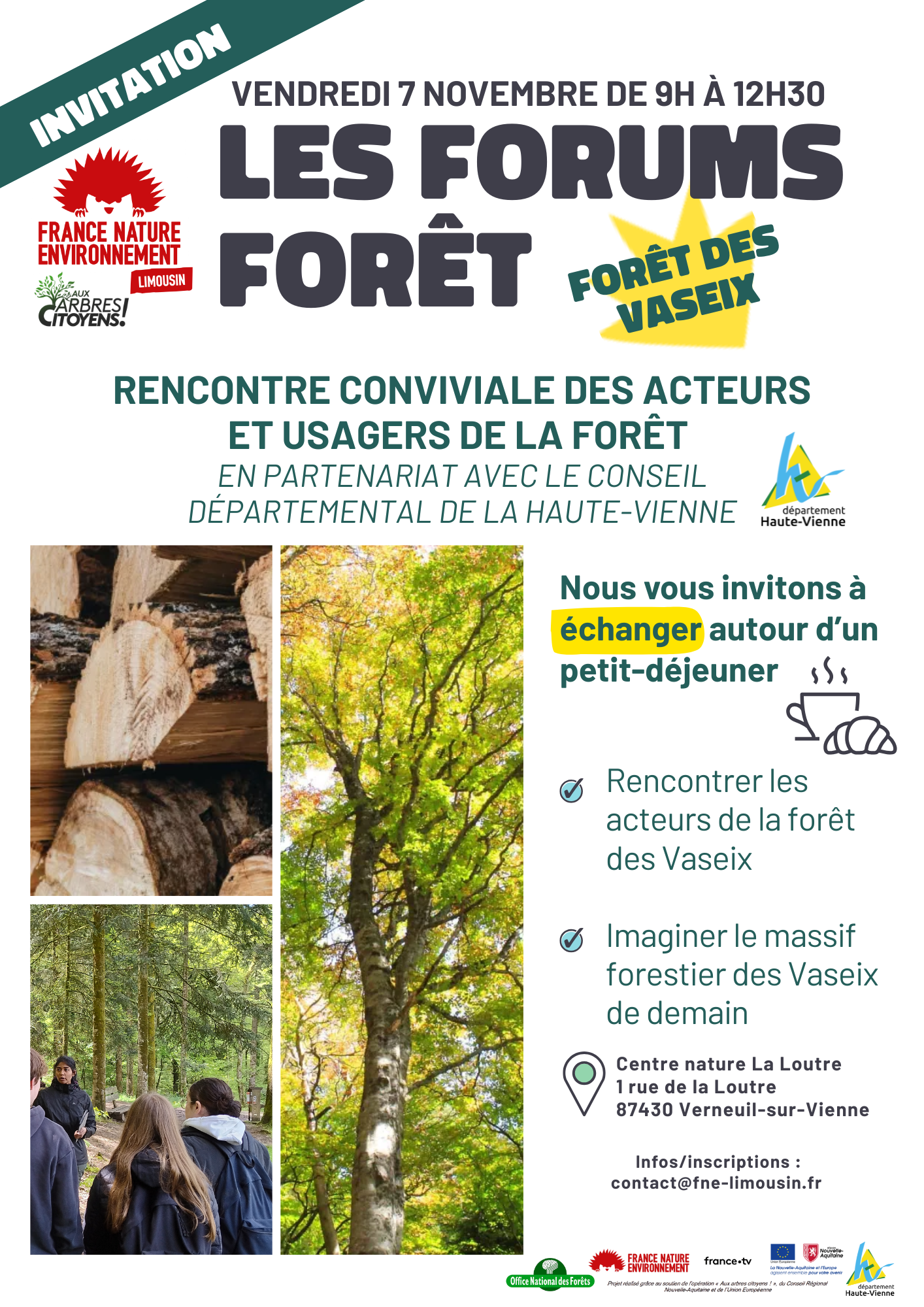 France Nature Environnement Limousin propose 3 rencontres conviviales entre acteurs et usagers de la forêt, et vous invite à échanger autour d’un petit-déjeuner.
