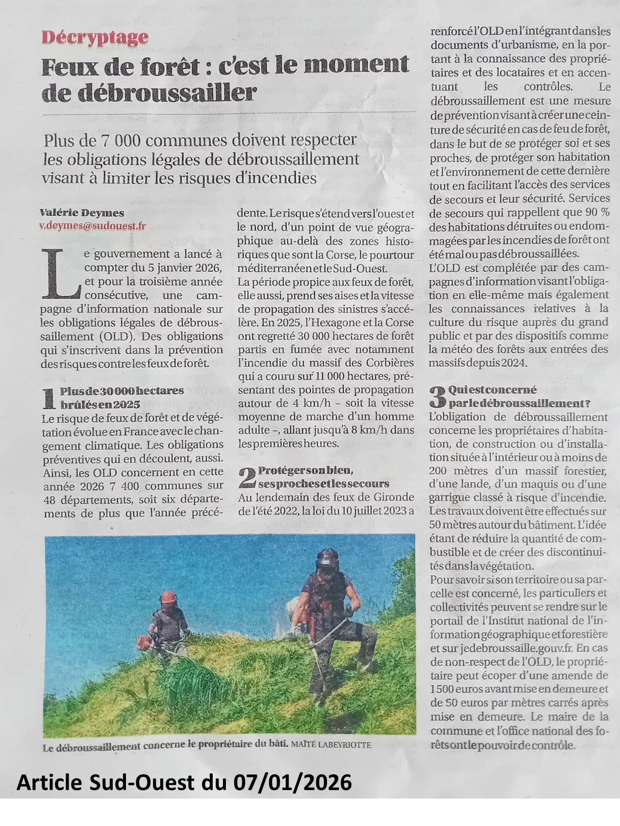 C’est tout l’enjeu de la nouvelle édition de la campagne de sensibilisation sur les obligations légales de débroussaillement (OLD) menée par le Gouvernement du 5 janvier au 15 février 2026 : transformer la prévention en un réflexe collectif et préparer la prochaine saison des feux.