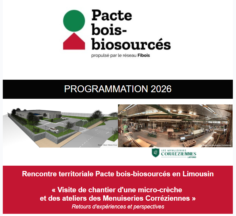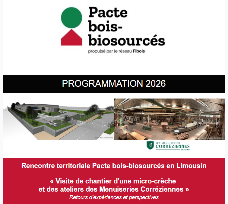 Cet Ă©vènement s’inscrit dans la programmation 2026 de l’animation du Pacte bois-biosourcĂ©s de Nouvelle-Aquitaine.